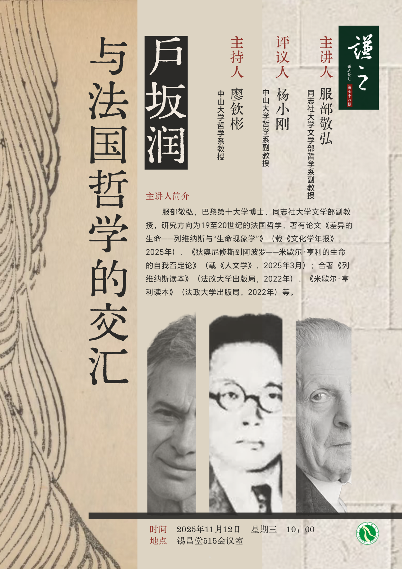 谦之论坛预告 | 服部敬弘:户坂润与法国哲学的交汇