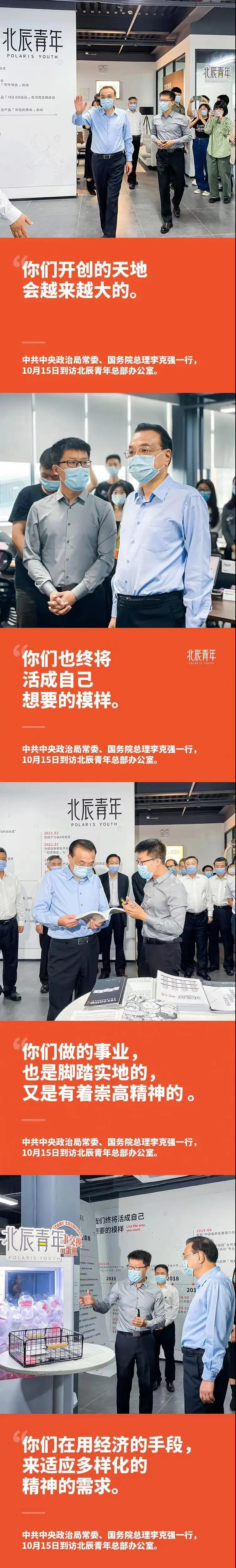2021年10月15日,李克强总理在广州考察时到访了宋超系友创办的北辰青年总部。