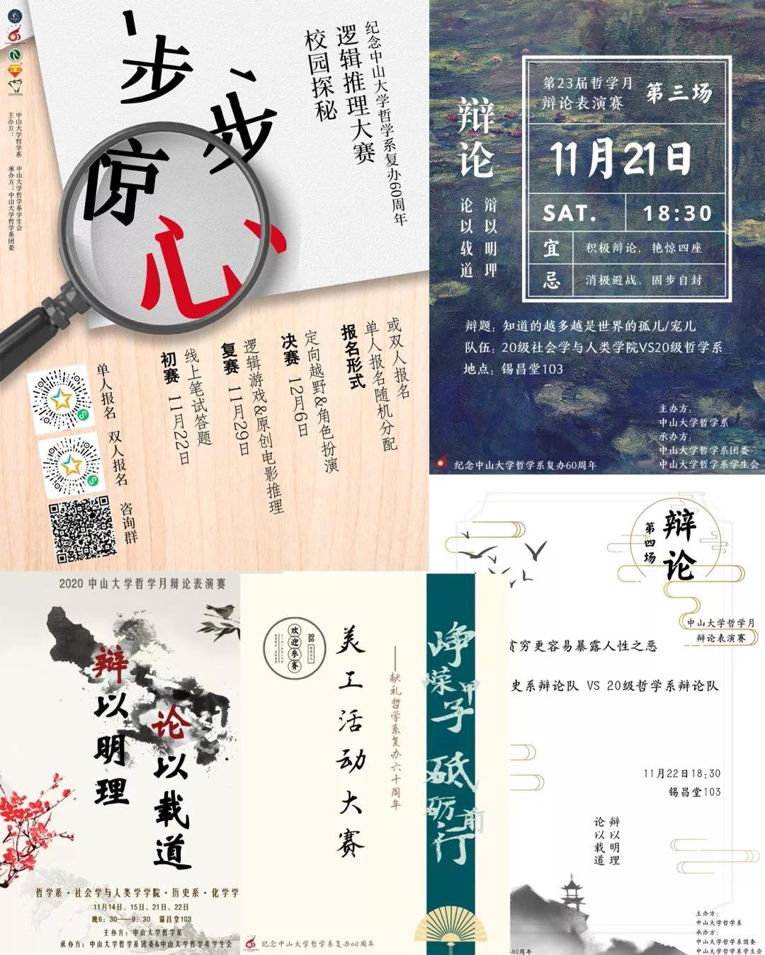 活动子项目包括:哲学前沿“智慧之光”名师讲座、三级赛制“步步惊心”校园探秘逻辑推理大赛、辩论表演赛、学术论坛、主题电影展、古琴音乐会等......