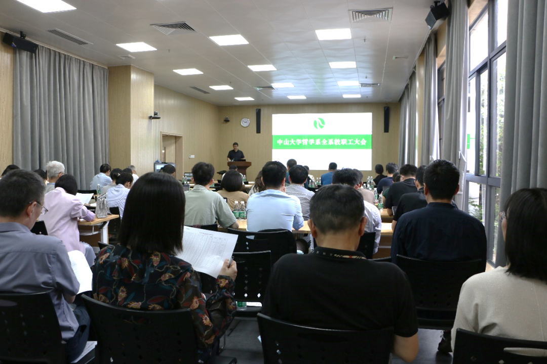 2023年4月17日上午,我系在锡昌堂103室召开全系教职工大会。系党政班子成员、全体教职工参加会议。会议由系主任张伟主持。