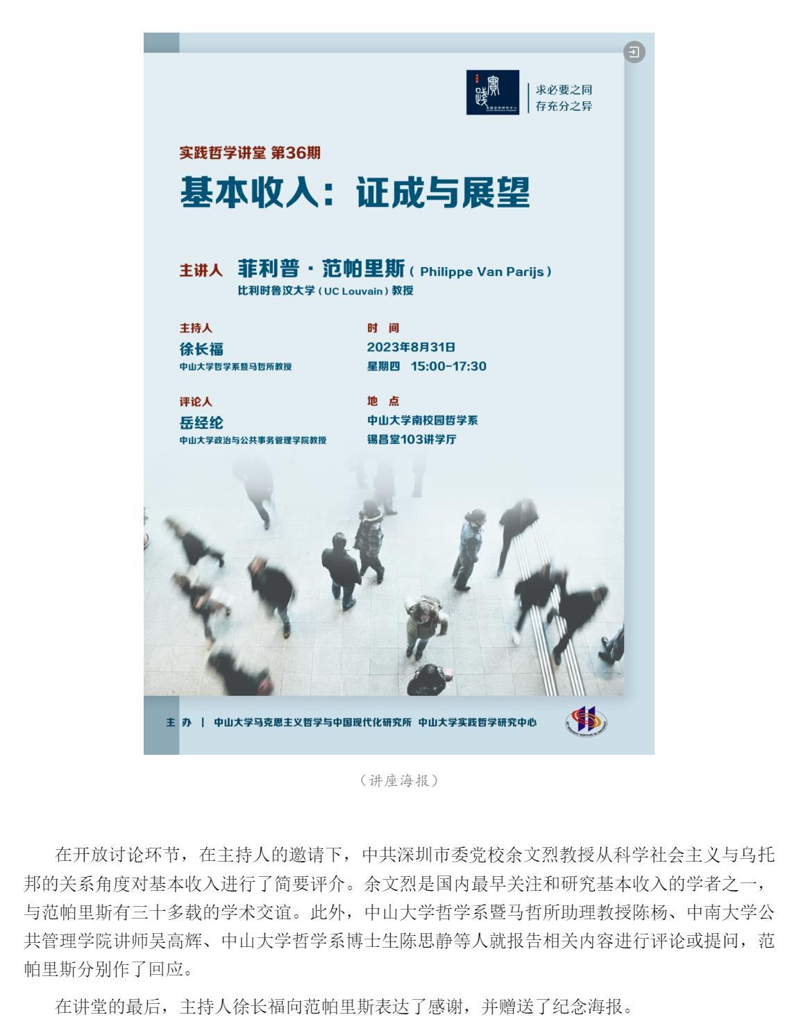 导航痕迹 太阳集团城娱8722 学术交流 学术讲座 实践哲学讲堂第36期纪要|菲利普·范帕里斯:基本收入:证成与展望 实践哲学讲堂第36期纪要|菲利普·范帕里斯:基本收入:证成与展望 发布日期:2023-12-26 扫描此二维码分享