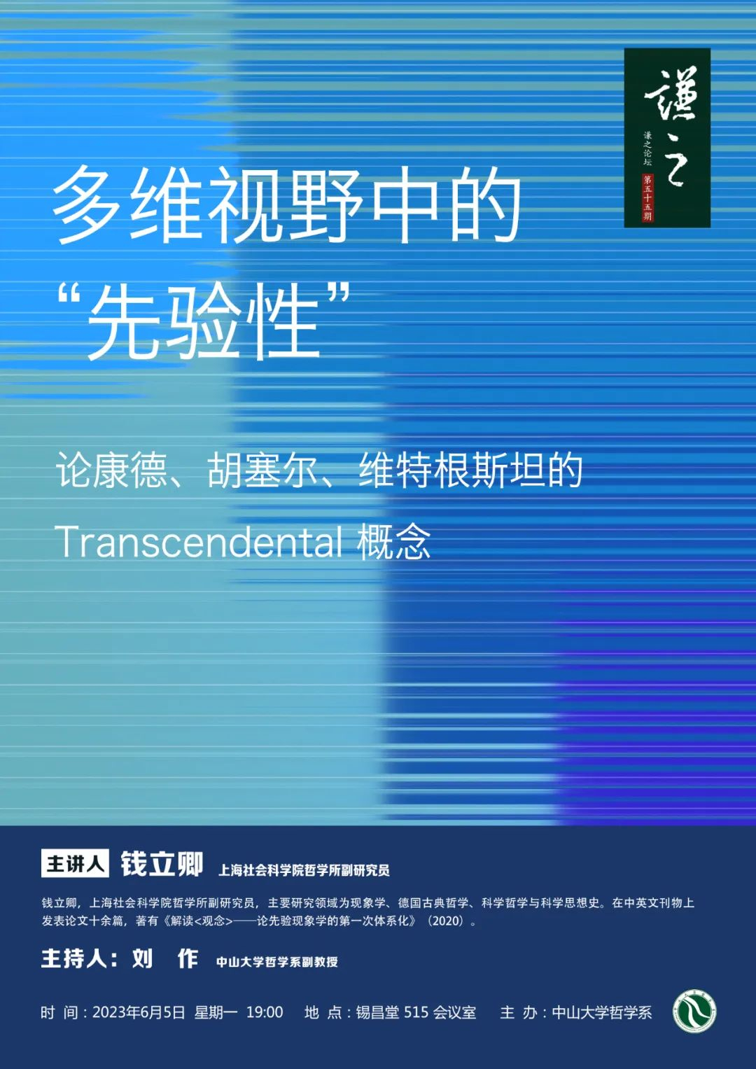谦之论坛预告 | 钱立卿:多维视野中的“先验性”:论康德、胡塞尔、维特根斯坦的Transcendental概念