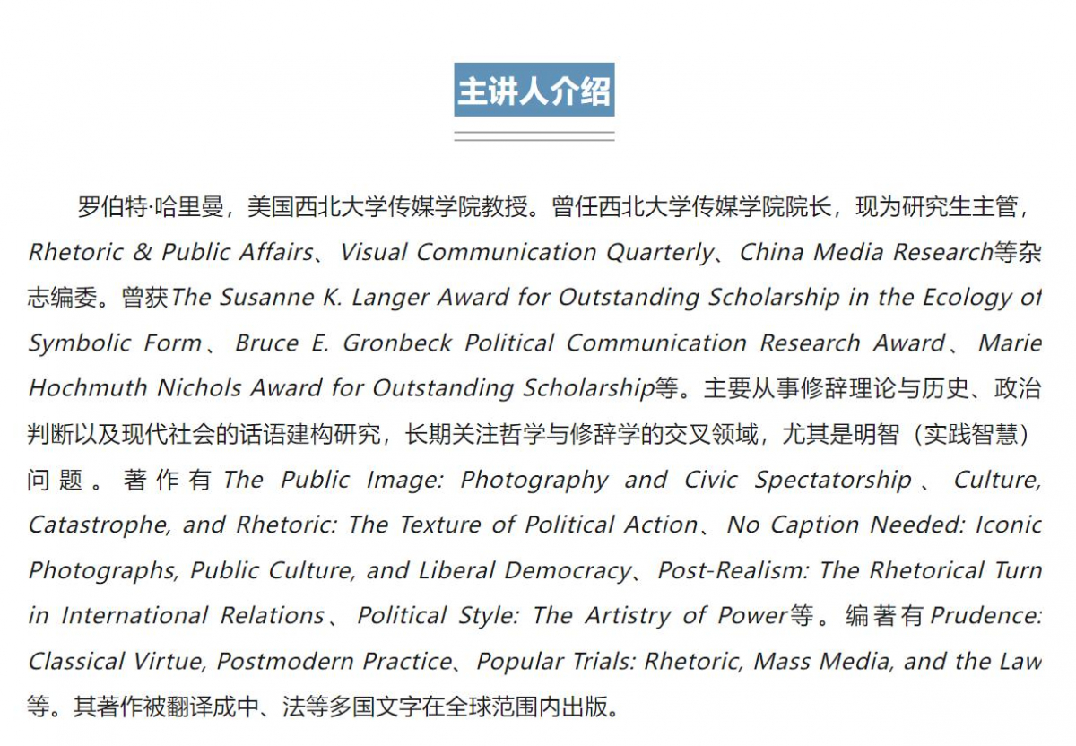 实践哲学讲堂第37期预告 | 罗伯特·哈里曼:哲学与修辞:过去和现在