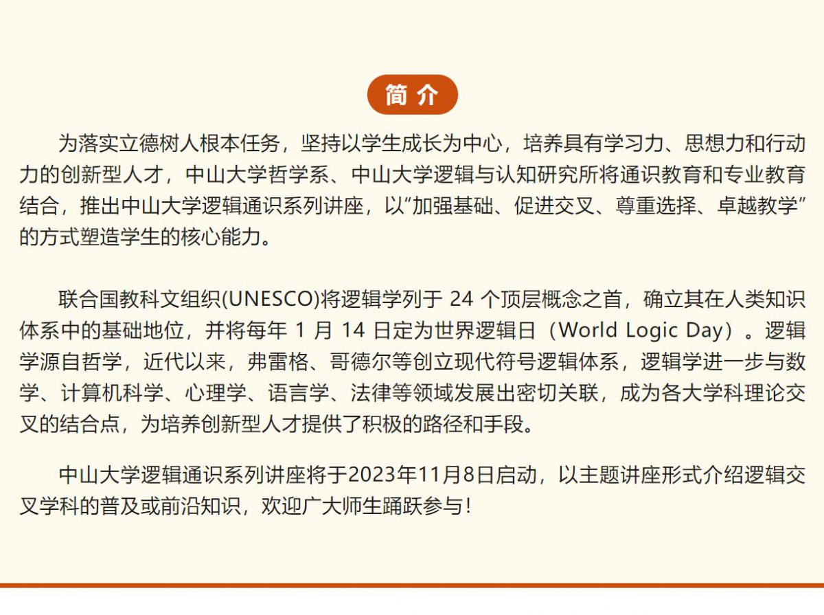 导航痕迹 太阳集团城娱8722 预告 | 太阳集团tcy8722逻辑通识系列讲座 预告 | 太阳集团tcy8722逻辑通识系列讲座 太阳集团tcy8722逻辑通识系列讲座 发布日期:2023-11-06 主题 太阳集团tcy8722逻辑通识系列讲座 活动时间 2023年11月08日 00:00 - 2023年12月22日 00:00