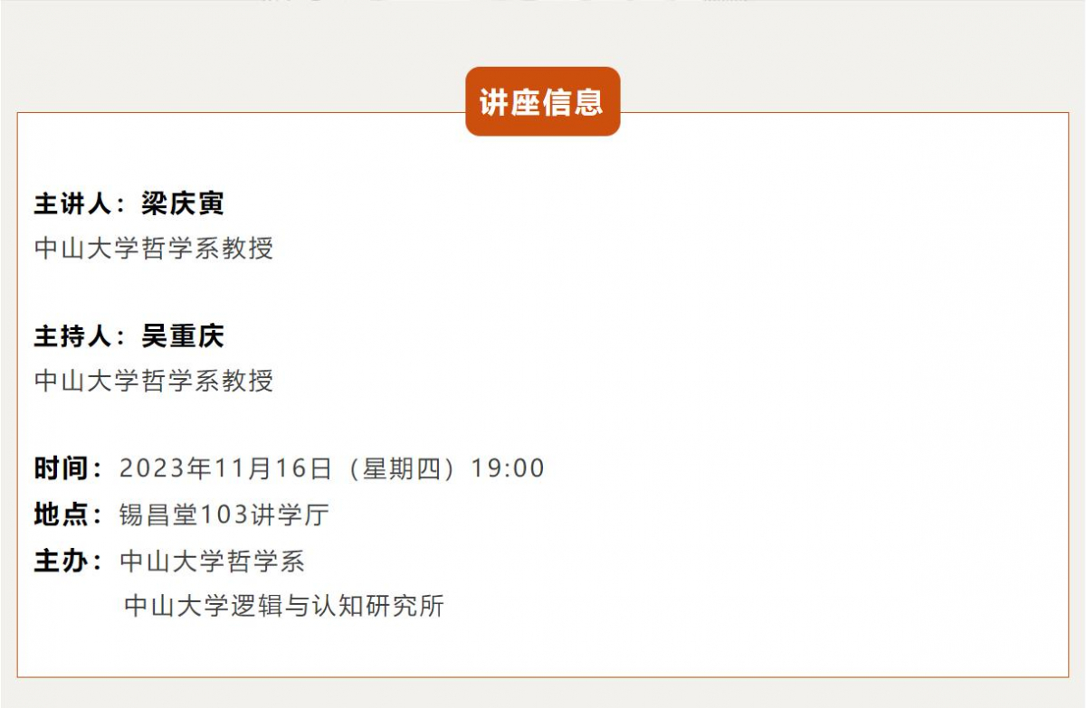太阳集团tcy8722逻辑通识系列·哲学月名师讲座第二讲预告 | 梁庆寅:从学术写作的角度看论据
