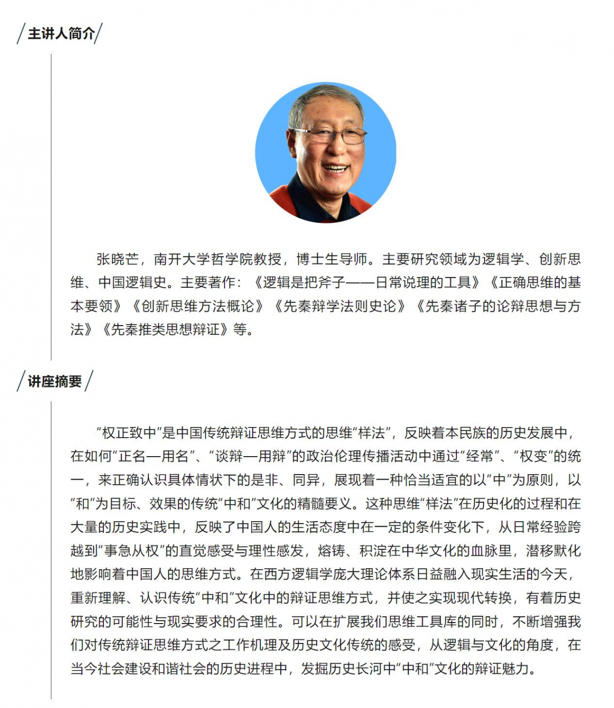 逸仙逻辑讲坛第十一期|张晓芒:权正致中——传统辩证思维方式