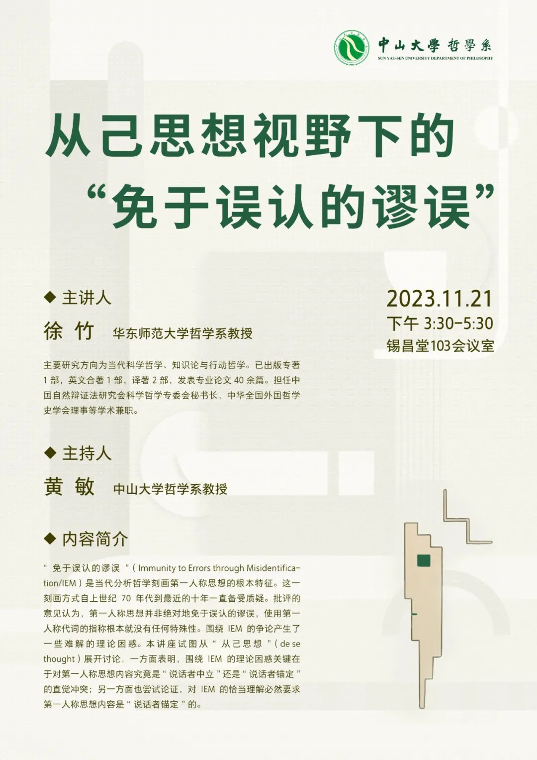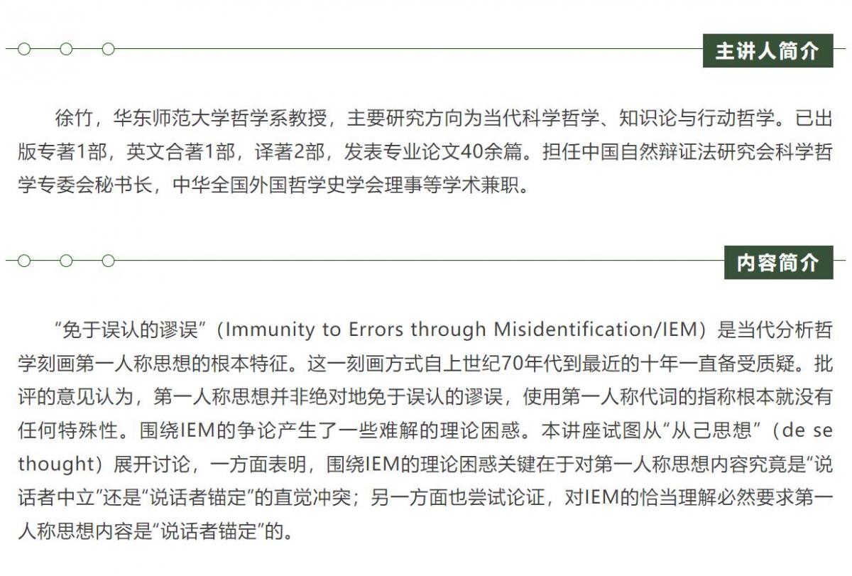 讲座预告|徐竹:从己思想视野下的“免于误认的谬误”
