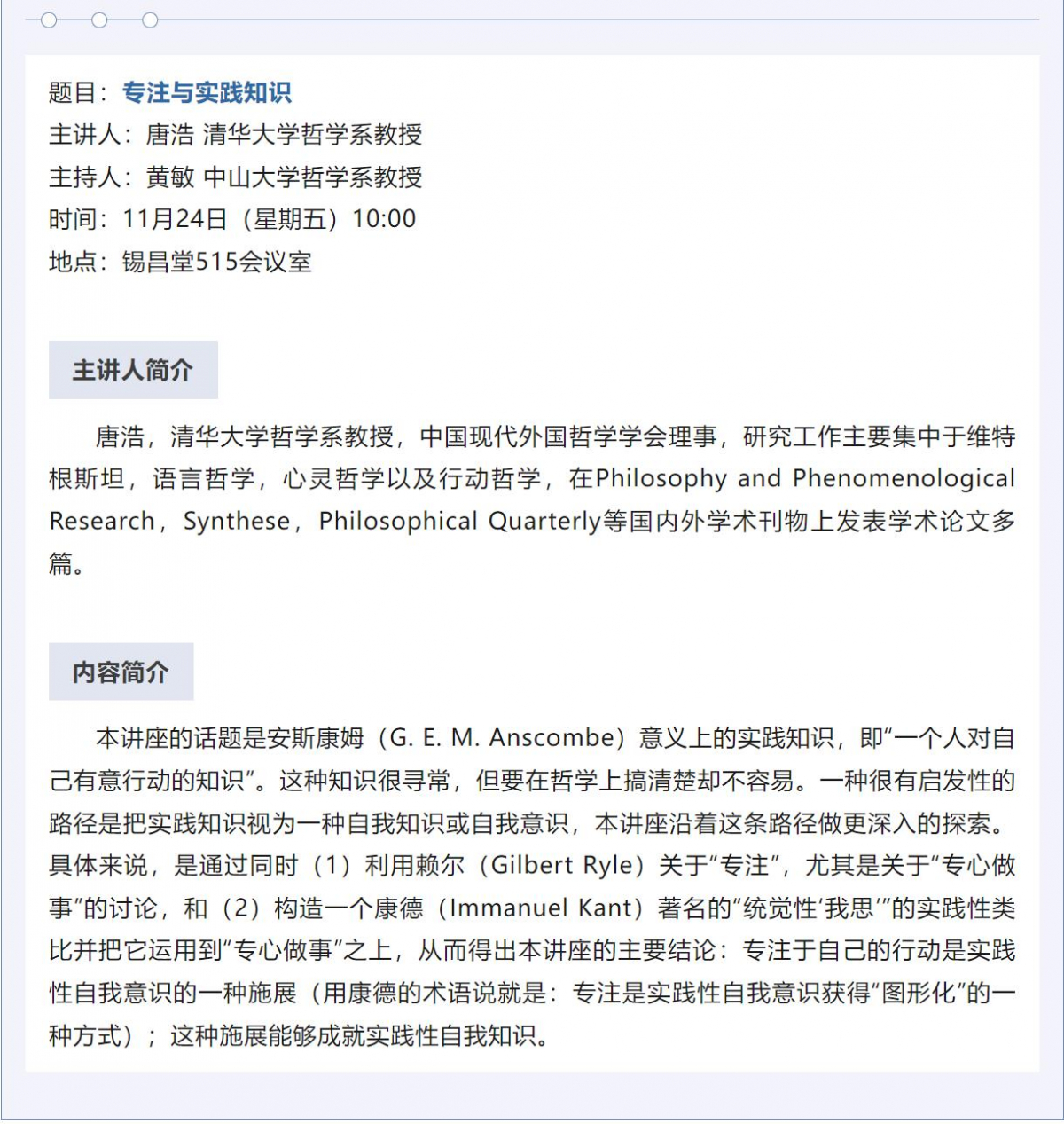 讲座预告|唐浩:专注与实践知识