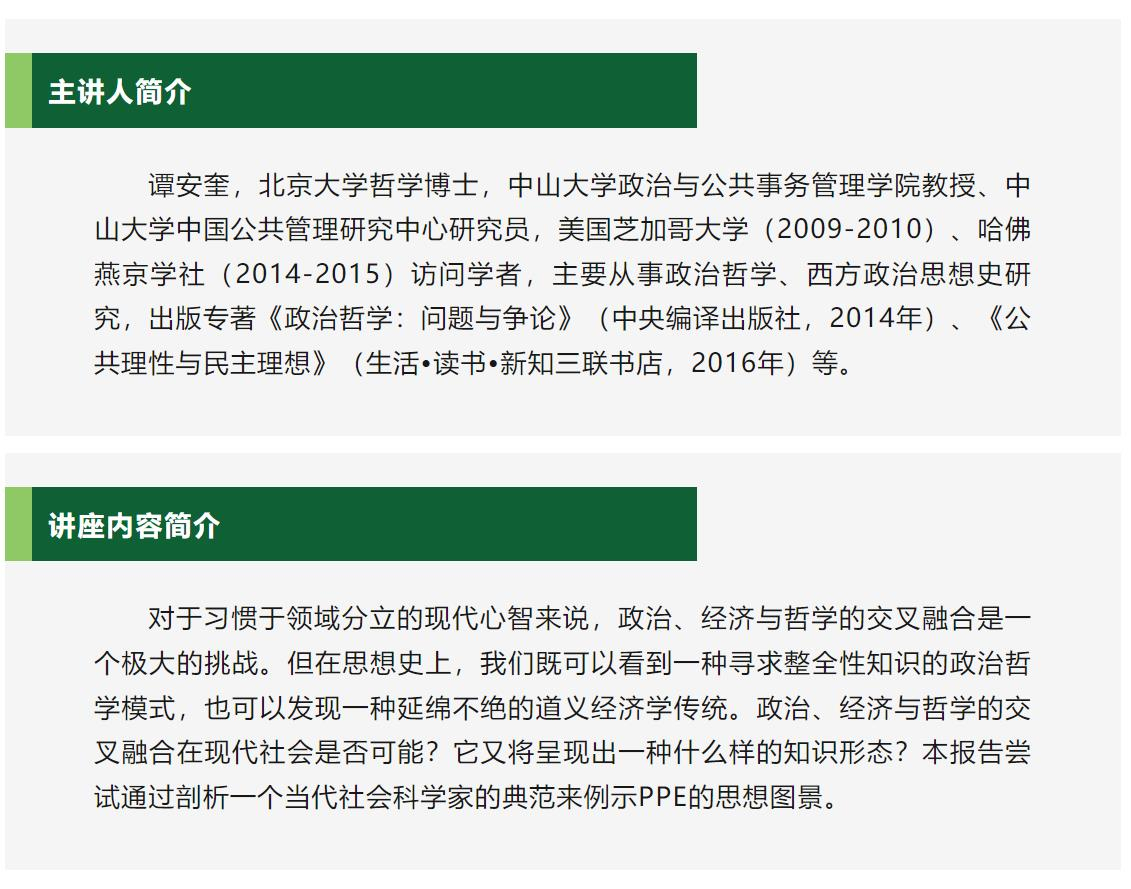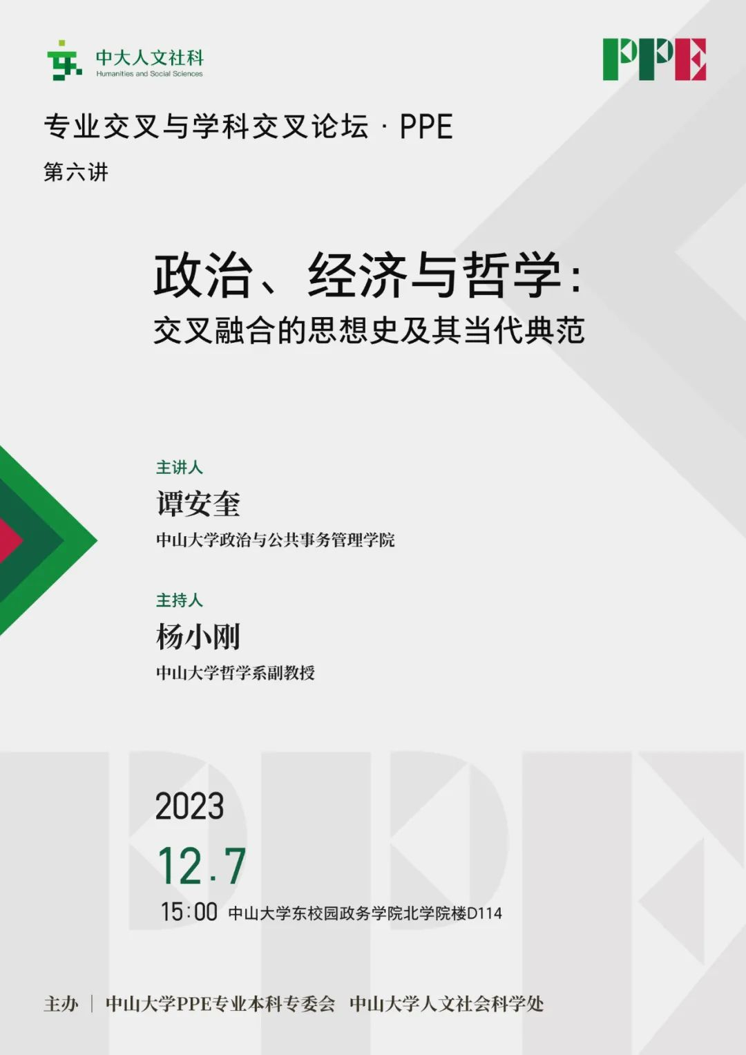 “专业交叉与学科交叉论坛·PPE”第六讲预告 | 谭安奎:政治、经济与哲学:交叉融合的思想史及其当代典范