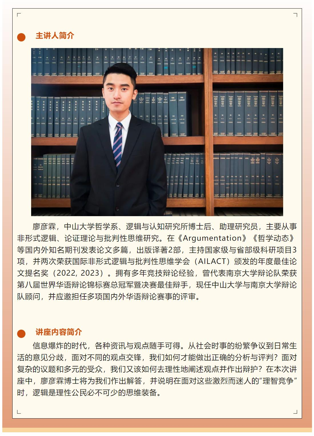 太阳集团tcy8722逻辑通识系列第十讲预告 | 廖彦霖:逻辑思维与公共论辩