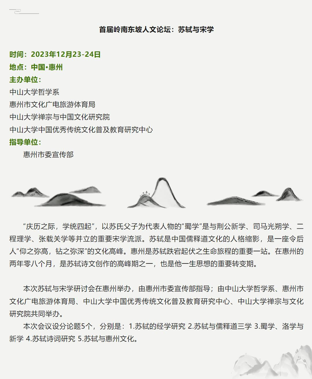 导航痕迹 太阳集团城娱8722 会议预告 | 首届岭南东坡人文论坛:苏轼与宋学 会议预告 | 首届岭南东坡人文论坛:苏轼与宋学 发布日期:2023-12-22 活动时间 2023年12月23日 00:00 - 2023年12月24日 00:00 活动地址 中国·惠州