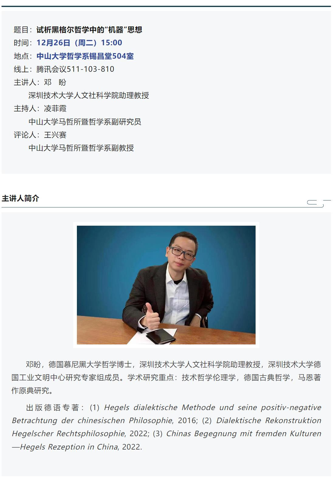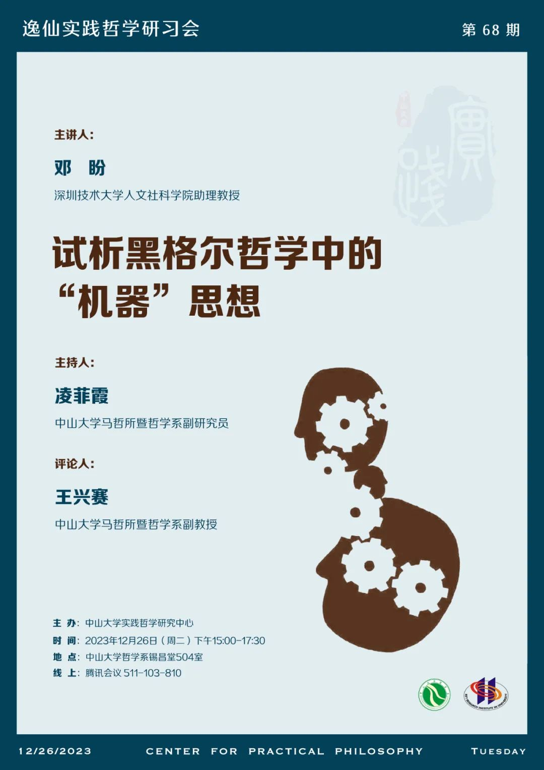 逸仙实践哲学研习会第68期预告|邓盼:试析黑格尔哲学中的“机器”思想
