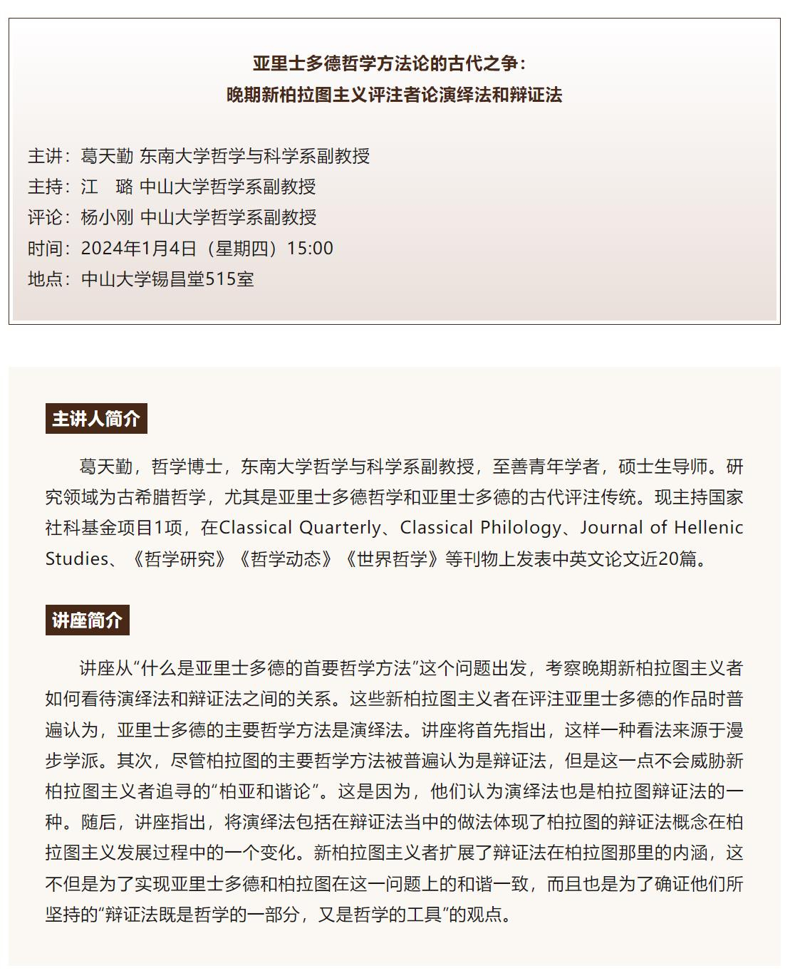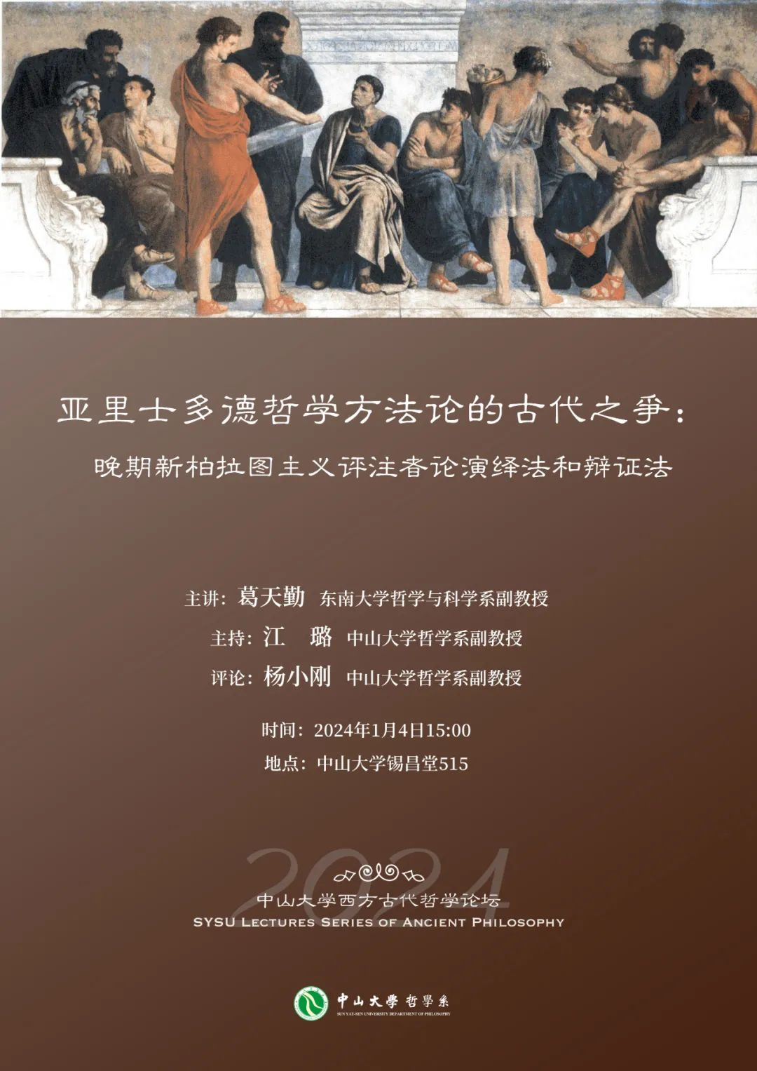太阳集团tcy8722西方古代哲学论坛预告|葛天勤:亚里士多德哲学方法论的古代之争:晚期新柏拉图主义评注者论演绎法和辩证法