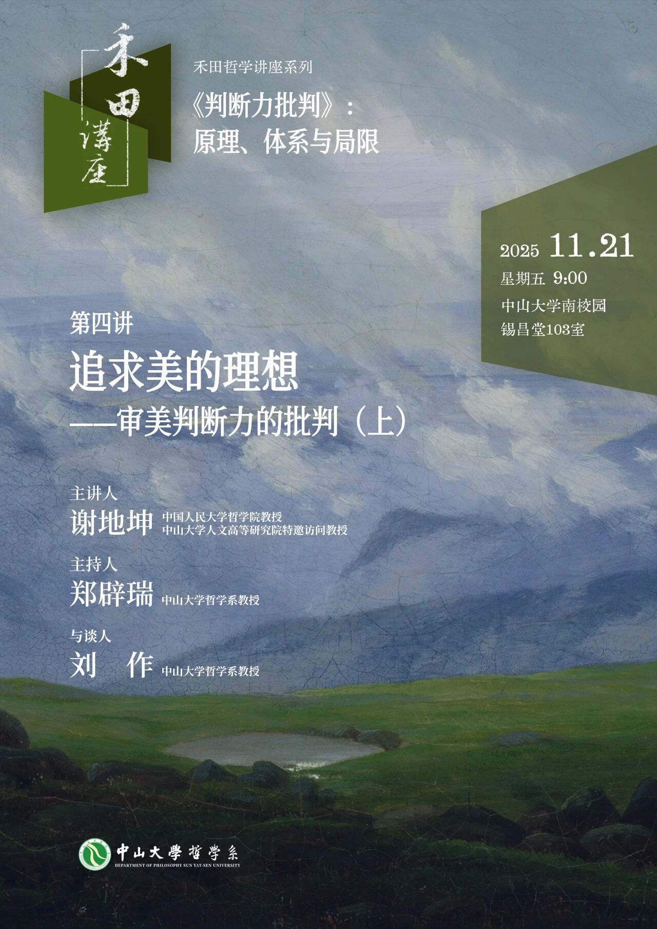 禾田哲学讲座系列第四讲预告 | 谢地坤:追求美的理想——审美判断力的批判(上)