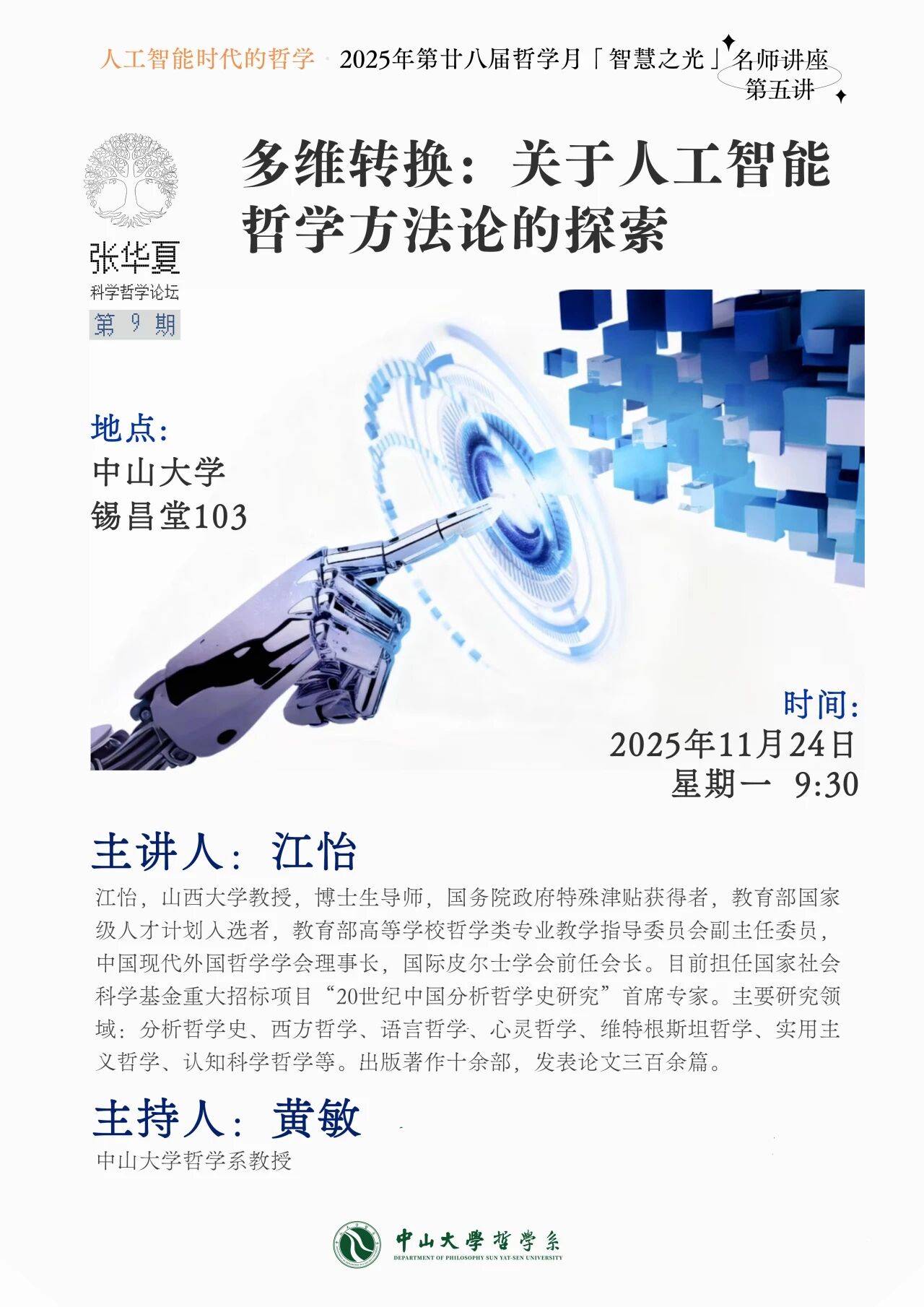 人工智能时代的哲学 · 哲学月名师讲座第五讲预告 | 江怡:多维转换:关于人工智能哲学方法论的探索